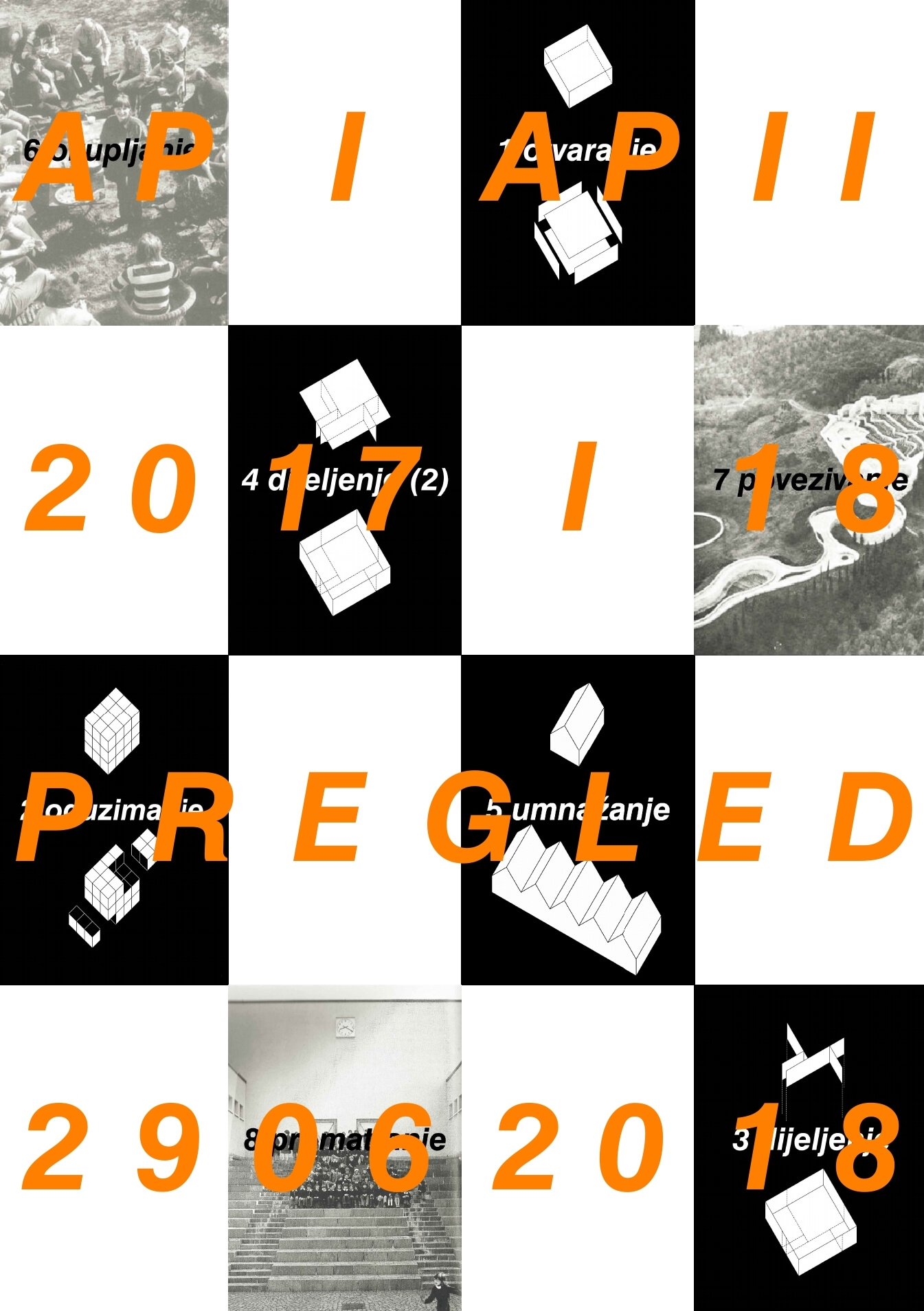 PREGLED: AP I / AP II pozivamo vas na završni pregled zadataka i studentskih projekata predmeta Arhitektonsko projektiranje I i II studija arhitekture i urbanizma u 2017/18 petak 29.06. 14:00-18:00 studio A+U